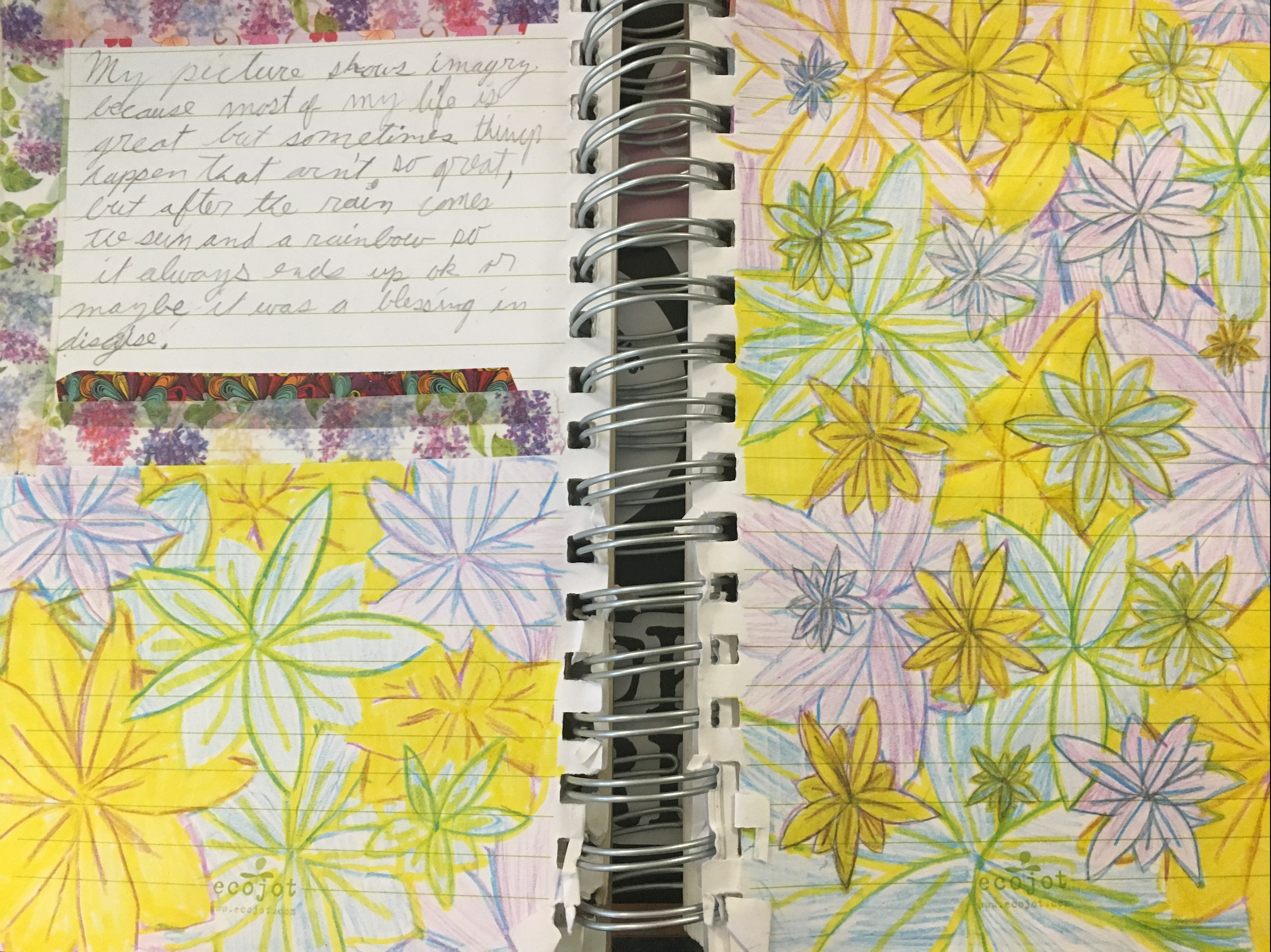 My personal journals had always been something of a mix of scrapbooking, diary entries, flaps of papers with short stories, pasted in notes, etc. The rise of Bullet Journaling speaks to my love of creativity, planning, and writing. In fact, my favorite subject to teach is Writing. When you google bullet journals, though, you’ll see layouts that make you cringe under Pinterest Pressure. Smashbooks, on the other hand, are meant to be messy. They went through a quick flash of popularity some years back; here’s the K&Company introduction to the smashbook if you want to see a video of the idea. The description at the front of my K&Company smash book says: