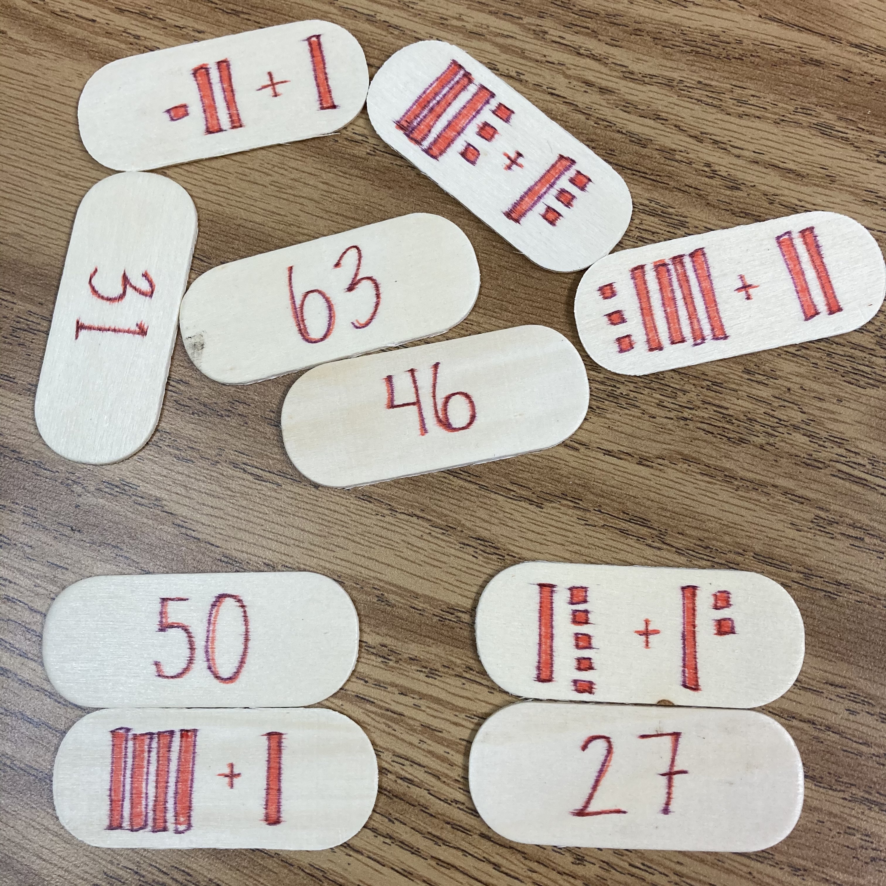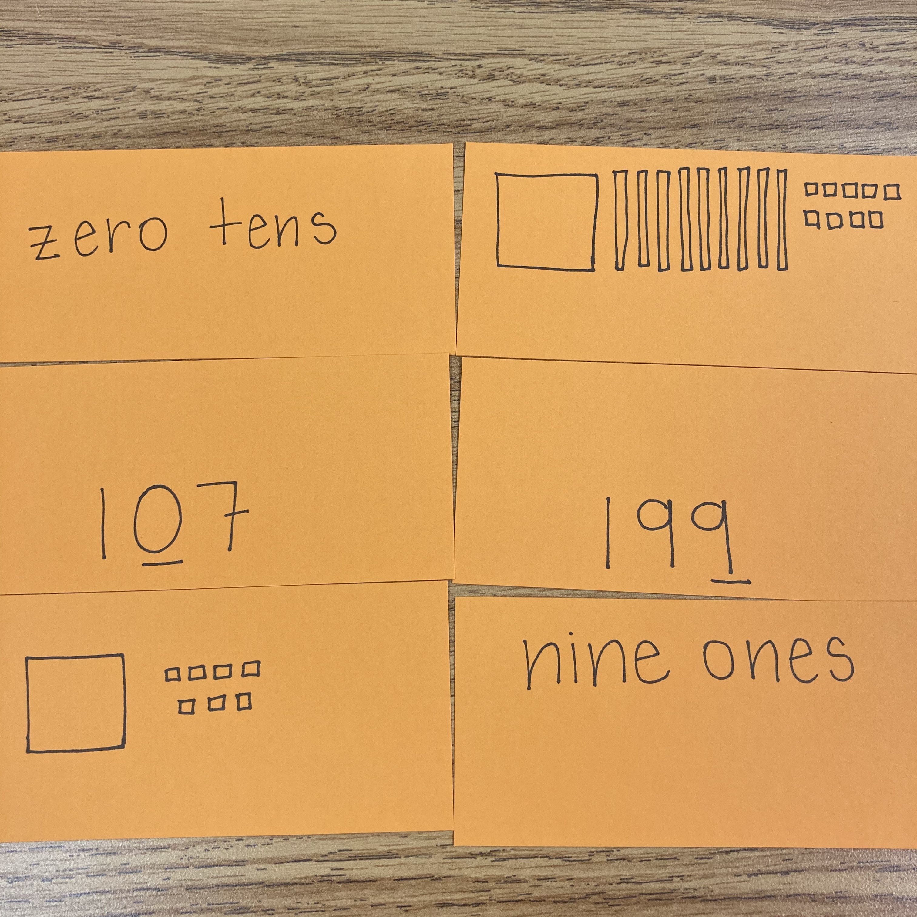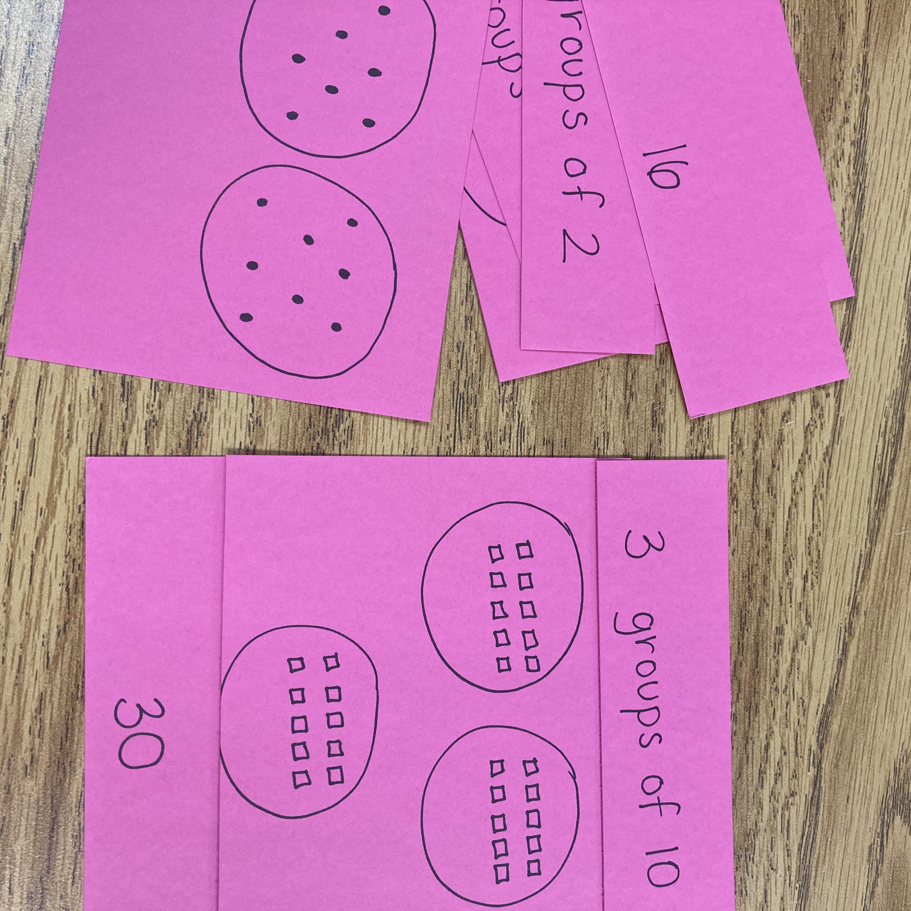 This is the easiest to make. If you have small bits of cardstock, you can just have two things that match up. I matched up clocks and times, equations and what x equals, vocabulary words and definitions, base ten blocks visually and their number representation, and so many more. You can also put these on popsicle sticks for durability.