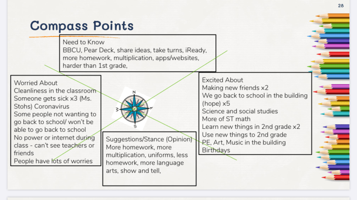 - I used the 15 minute buffer time of virtual entry to build connections so that every day kids were willing to share about themselves when they entered class